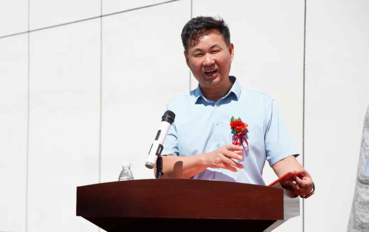 在热烈的掌声中,百成鲜食集团董事长刘成发表致辞。刘成董事长首先对出席仪式的领导嘉宾表示热烈欢迎,向为新大门建设付出努力的拓达集团及全体建设者致以诚挚感谢,向长期坚守岗位、助力企业发展的全体员工表示崇高敬意。他回顾了百成鲜食集团的发展历程:自 1996年扎根新疆以来,集团始终坚守“绿色美味的创造者,营养健康的守护者”使命,秉持“新疆味,为新疆”理念,逐步构建起覆盖农牧产品种养殖、区域特色食品加工、餐饮食材供应链、农副产品新零售、酒店餐饮管理、仓储物流的全产业链生态体系,成功培育“人间三月”、“味出疆”、“银色时光”等知名品牌,先后荣获“全国绿色供应链示范企业”、“自治区专精特新企业”、“自治区农业产业化重点龙头企业”等荣誉称号,为新疆食品产业发展作出积极贡献。